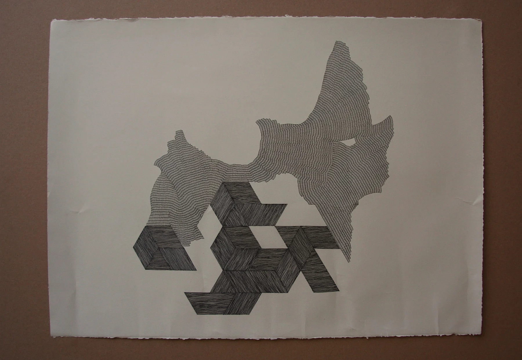 This is an ongoing collaborative drawing project with artist David Plaza Sagrado (Cuenca, Spain) that considers the slow accumulation of a work across geographical space. Together we make repetitive drawings using black ink pen. We mail the works back and forth between Spain and Canada, each artist responding to other’s additions.
